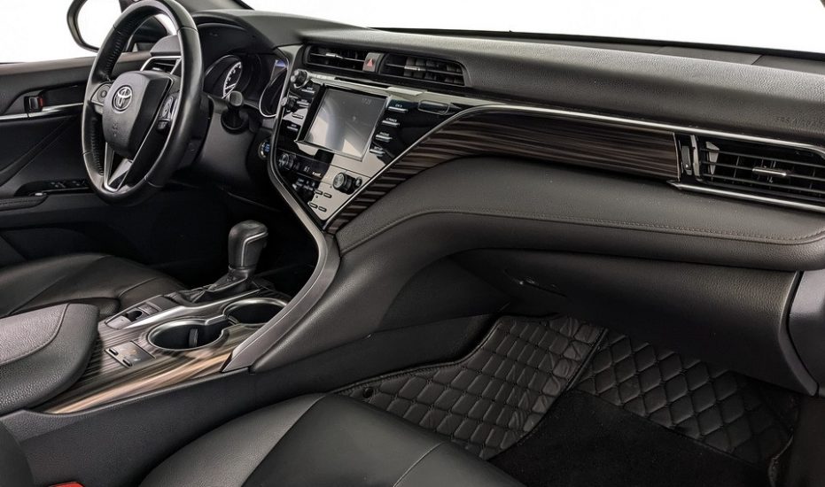 - Обивка салона черной кожей